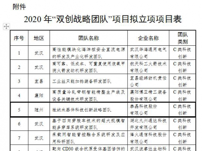 歷經(jīng)數(shù)月資格審查,集中評審,路演答辯,專家組實地考察,5月6號湖北省科技廳公示2020年度雙創(chuàng)戰(zhàn)略團隊入選名單,全省60個團隊入選,泰