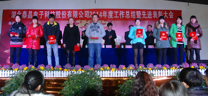 大會由公司黨委書記、副總經(jīng)理屈總主持。首先由公司董事長特別助理何總宣讀公司2014年度先進的表彰決定;共有泰華電子、東奧電子、切割分廠、被銀分廠獲得先進集體稱號;行政部、采購跟單、基座分廠、周波分廠獲得KPI先進單位;焊接分廠獲得表揚單位;喻琳琳、謝正四獲得生產(chǎn)標兵稱號;張小麗、李珍珍等56人獲得先進個人稱號。“表彰決定”宣讀完畢后,受到表彰的先進集體和先進個人分別上臺接受頒獎。先進集體代表泰華電子,受表揚單位焊接分廠,KPI考核先進單位代表行政部,先進標兵代表,先進個人代表分別上臺發(fā)言,與大家分享他們的好作風、好經(jīng)驗。