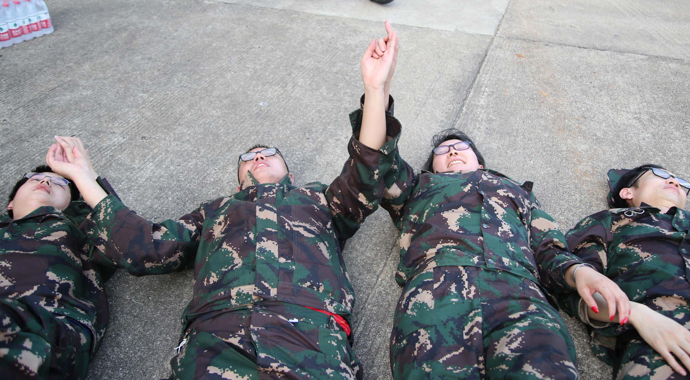 烈日下,汗水濕透我們的衣服,吶喊聲、助威聲此起彼伏,大家同心協(xié)力,動(dòng)作統(tǒng)一,目標(biāo)一致,100圈、200圈、500圈,離目標(biāo)越來(lái)越近。在這段艱難的過(guò)程中,我們的教練也一刻不停為學(xué)員們擦汗、喂水、人工噴水取涼……在最后100圈,大家更是咬緊牙關(guān)、奮力沖關(guān),終于打破極限,成功挑戰(zhàn)1400圈!