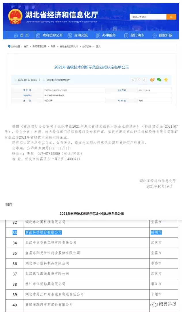 據(jù)悉,“湖北省技術(shù)創(chuàng)新示范企業(yè)”需具有完善的創(chuàng)新機制、健全的創(chuàng)新體系、充足的創(chuàng)新投入、顯著的創(chuàng)新效益,積極實施技術(shù)改造,具有重大科技成果轉(zhuǎn)化能力,節(jié)能環(huán)保成效顯著,能夠以創(chuàng)新引領(lǐng)企業(yè)在行業(yè)競爭中的領(lǐng)先優(yōu)勢。經(jīng)企業(yè)自主申報、地方經(jīng)信部門組織推薦以及專家評審,泰晶科技成功入選2021年“省級技術(shù)創(chuàng)新示范企業(yè)”公示名單,這是對公司近年來不斷創(chuàng)新發(fā)展、持續(xù)轉(zhuǎn)型升級所獲成績的充分肯定。