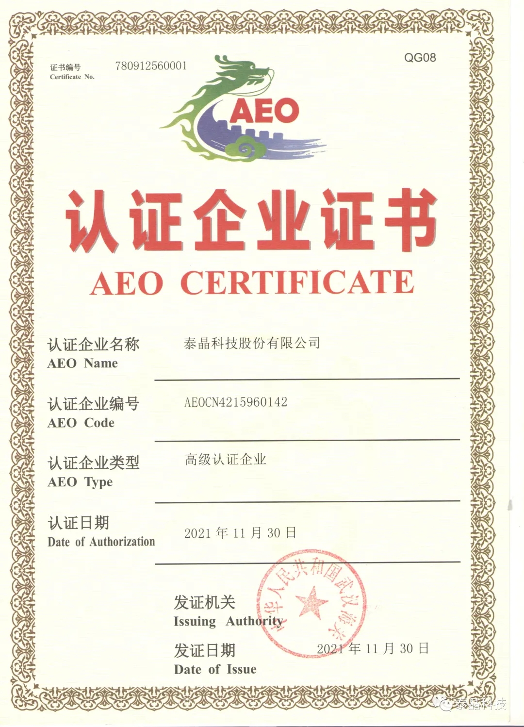 海關(guān)AEO高級認(rèn)證是各國海關(guān)共同認(rèn)可的國際貿(mào)易企業(yè)最高信用等級,標(biāo)準(zhǔn)高、難度大,是一項(xiàng)全新而復(fù)雜的系統(tǒng)工程,全國審核通過率極低。此次通過海關(guān)認(rèn)證是對公司管理體系、落實(shí)執(zhí)行和控制能力的充分認(rèn)可,獲得高級認(rèn)證后公司在國際貿(mào)易上可以享受較低的進(jìn)出口通關(guān)查驗(yàn)率,享受與中國達(dá)成AEO互認(rèn)國家或區(qū)域給與的國際通關(guān)便利措施,在國內(nèi)可以享受海關(guān)、銀行等40個(gè)部門關(guān)于信用、金融等各類聯(lián)合激勵(lì)措施。同時(shí),也有助于提升我司企業(yè)品牌形象,進(jìn)一步增強(qiáng)國際市場的競爭力。泰晶科技也會繼續(xù)堅(jiān)持貫徹落實(shí)AEO的各項(xiàng)要求在企業(yè)運(yùn)行中的持續(xù)性符合,推動(dòng)公司經(jīng)營管理水平再跨上一個(gè)新的臺階。