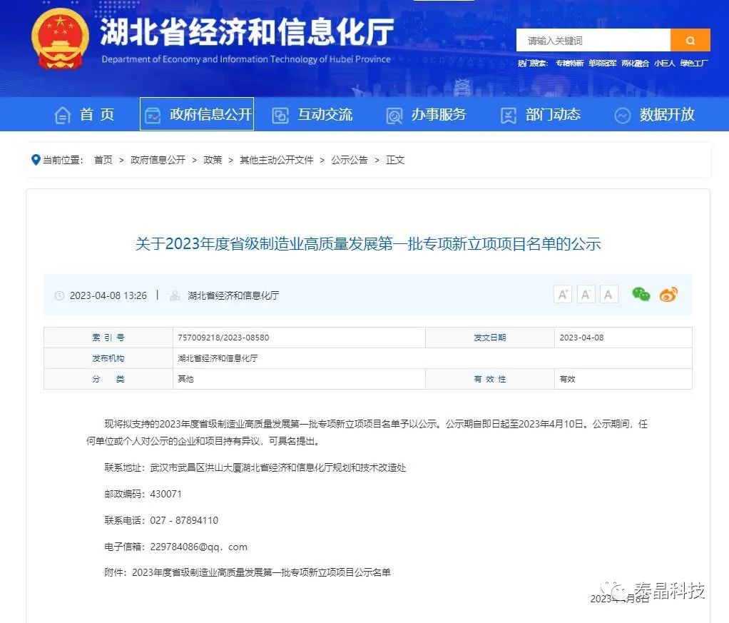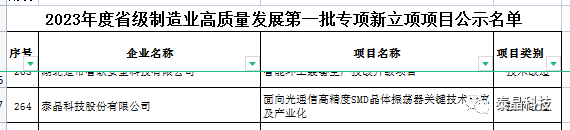 根據(jù)湖北省經(jīng)濟(jì)和信息化廳最新發(fā)布的《關(guān)于2023年度省級(jí)制造業(yè)高質(zhì)量發(fā)展第一批專項(xiàng)新立項(xiàng)項(xiàng)目名單的公示》,泰晶科技股份有限公司"面向光通信高精度SMD晶體振蕩器關(guān)鍵技術(shù)研究及產(chǎn)業(yè)化"項(xiàng)目成功入選,并已通過(guò)公示期。此次成功入選,既反映了公司制造業(yè)的實(shí)力,更代表了公司高質(zhì)量發(fā)展的潛力。